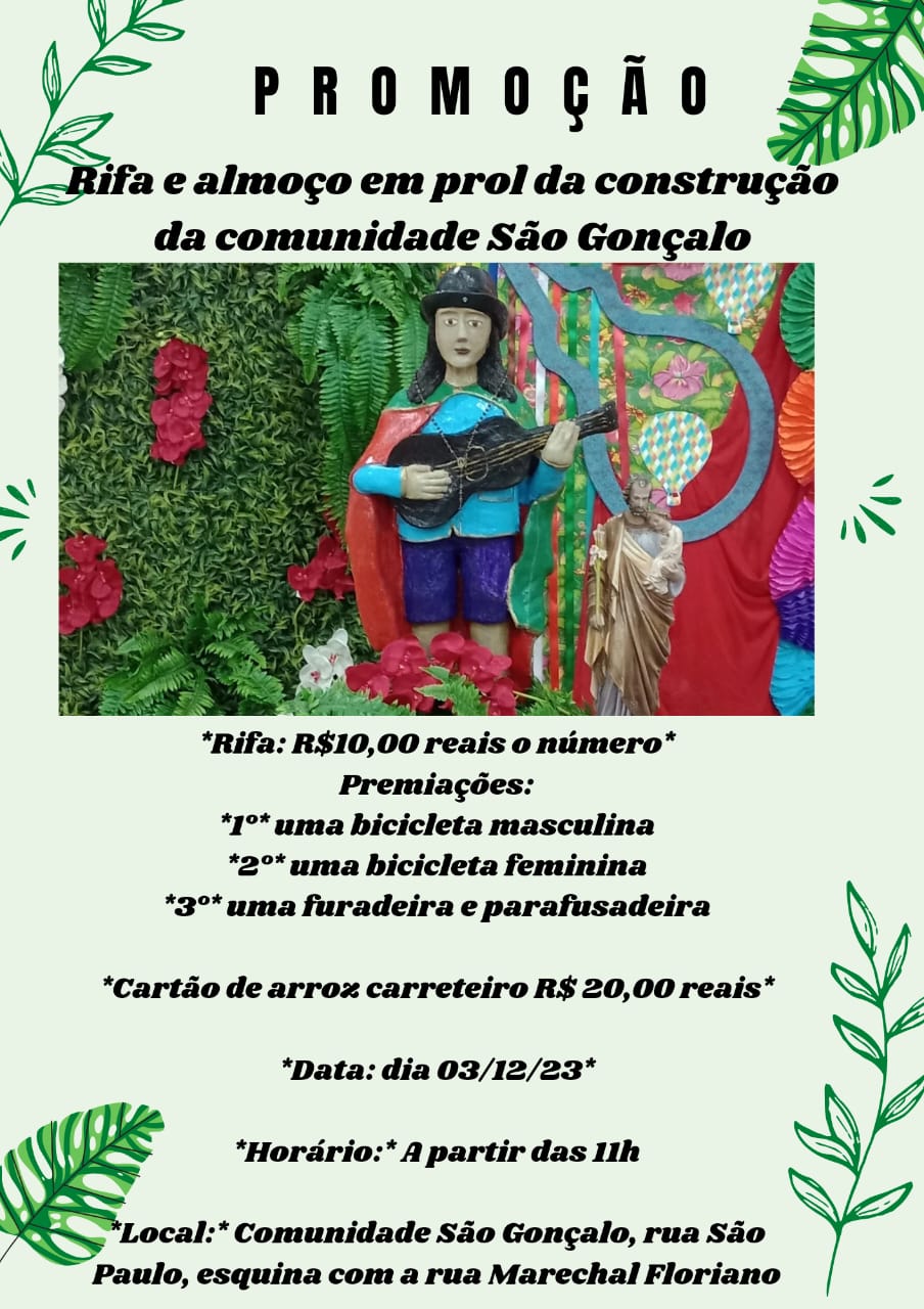 Tanto a rifa quanto a venda do arroz carreteiro, estão sendo realizado para custear a construção da Igreja São Gonçalo.